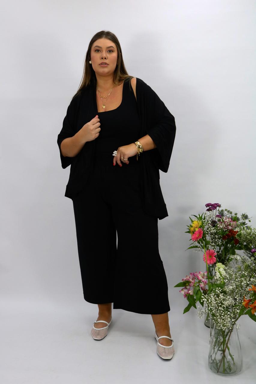 Modelagem: Pantacourt em viscolycra, com cós de elástico, bolso nas laterais.