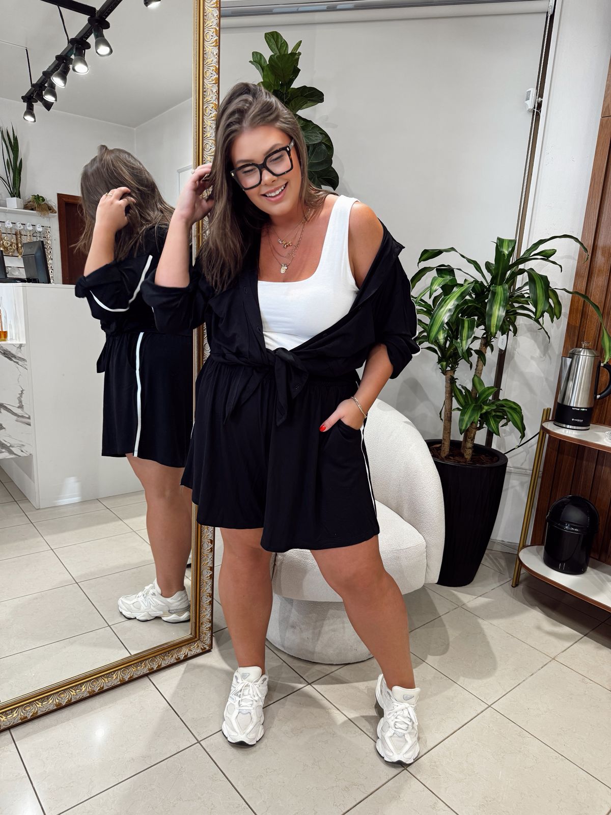 Bermuda em viscolycra, feita para quem ama leveza e movimento. O cós de elástico garante ajuste perfeito, enquanto o bolso faca adiciona praticidade ao visual. O detalhe da faixa lateral traz um toque moderno e alonga a silhueta, deixando a peça ainda mais estilosa e versátil para compor seus looks do dia a dia.