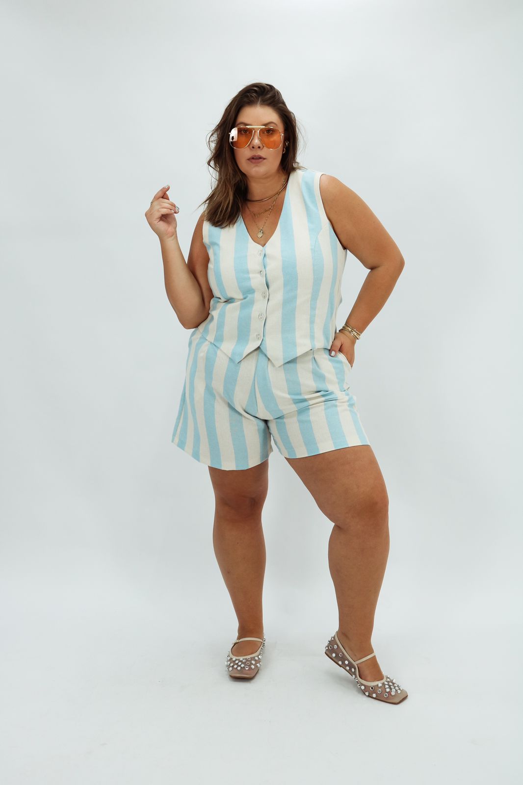 Nossa Bermuda e a peça perfeita para você fazer conjunto com o Colete Matilda e arrasar.