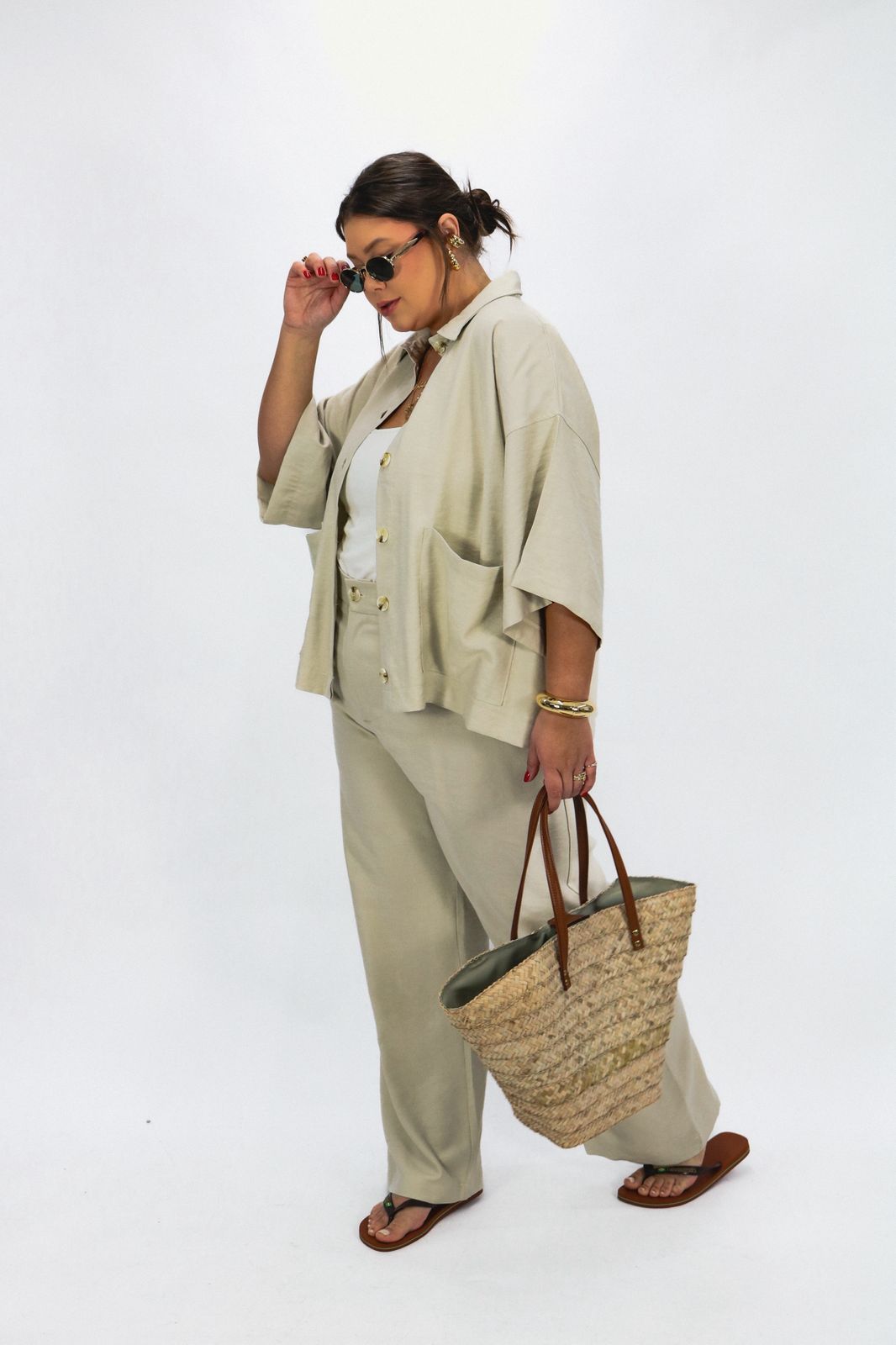 Modelagem: Calça de alfaiataria em liocel, desenvolvida em modelagem sofisticada e versátil. Possui fechamento frontal por botão e zíper, passantes para cinto que permitem diferentes composições, além de bolsos faca funcionais, que unem praticidade e elegância.