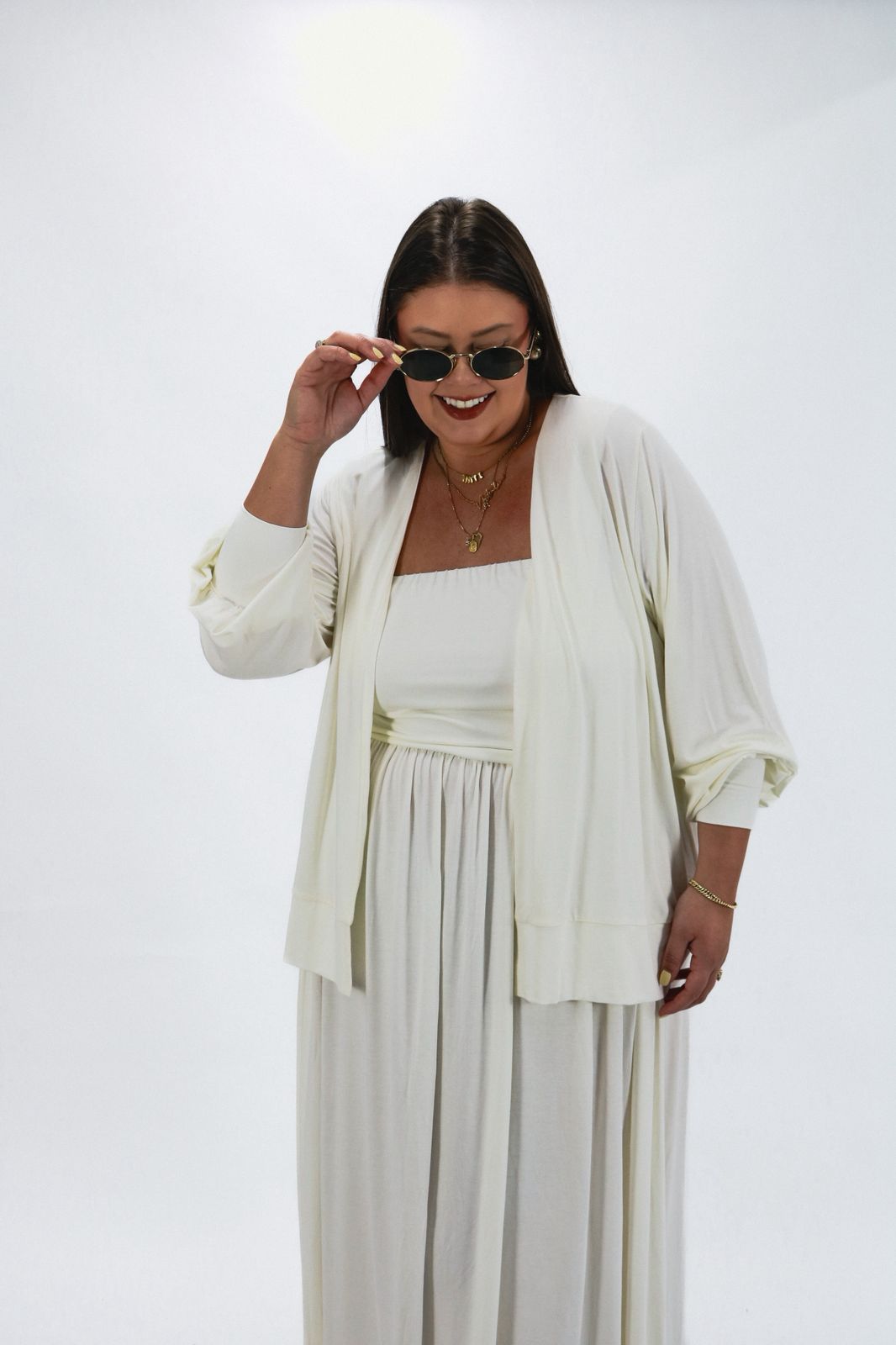 Um casaco perfeito para completar looks com estilo e conforto, podendo combinar com o nosso vestido Gabriela.