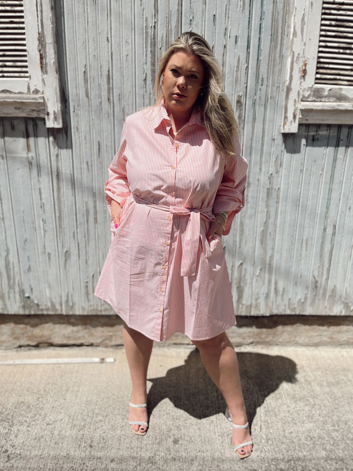 Modelagem: É uma camisa/vestido com botões, possui uma manga longa que pode ser ajustada com a lapela, possui bolsos e um cinto para a ragulagem na cintura.