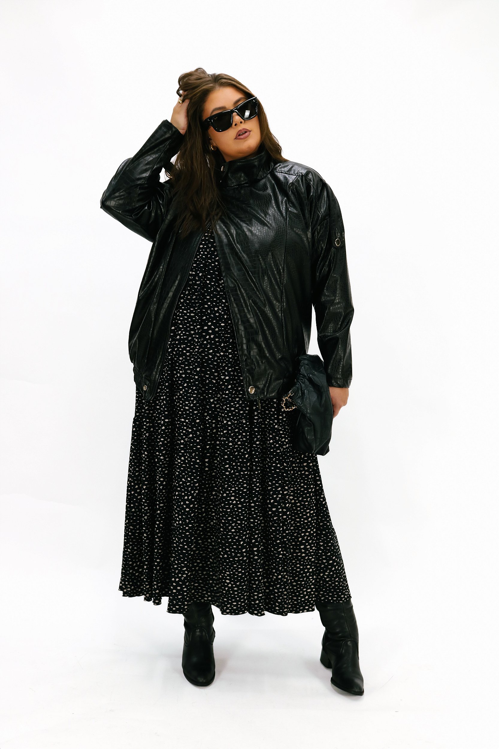 Jaqueta Anne é para quem não passa despercebida. Inspirada na icônica funil neck jagger, ela chega revestida em poliuretano com textura courino croco e forro interno em poliéster, uma combinação que entrega visual premium, conforto e durabilidade em uma peça que vai muito além das tendências. É o tipo de jaqueta que se torna parte da sua identidade.