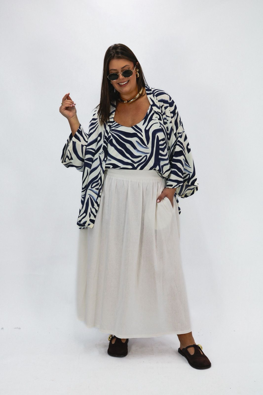 Adicione um toque de estilo imediato aos seus looks com o nosso kimono Iris. Esta terceira peça é a chave para transformar o básico em uma produção fashion e descontraída.