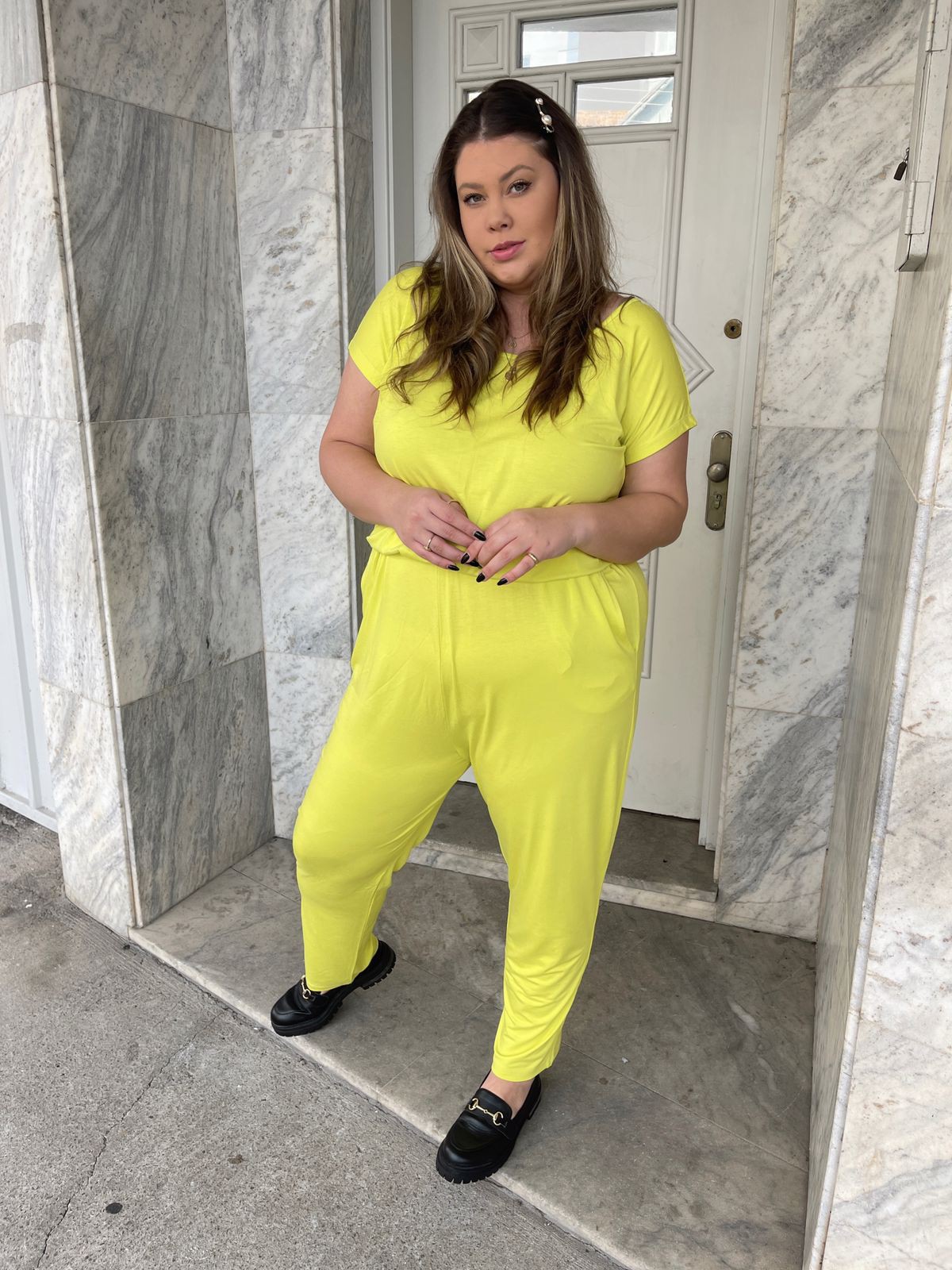 Modelagem: Macacão viscolycra de mangas curtas , elástico na cintura com bolso na lateral e detalhe de amarração nas costas.