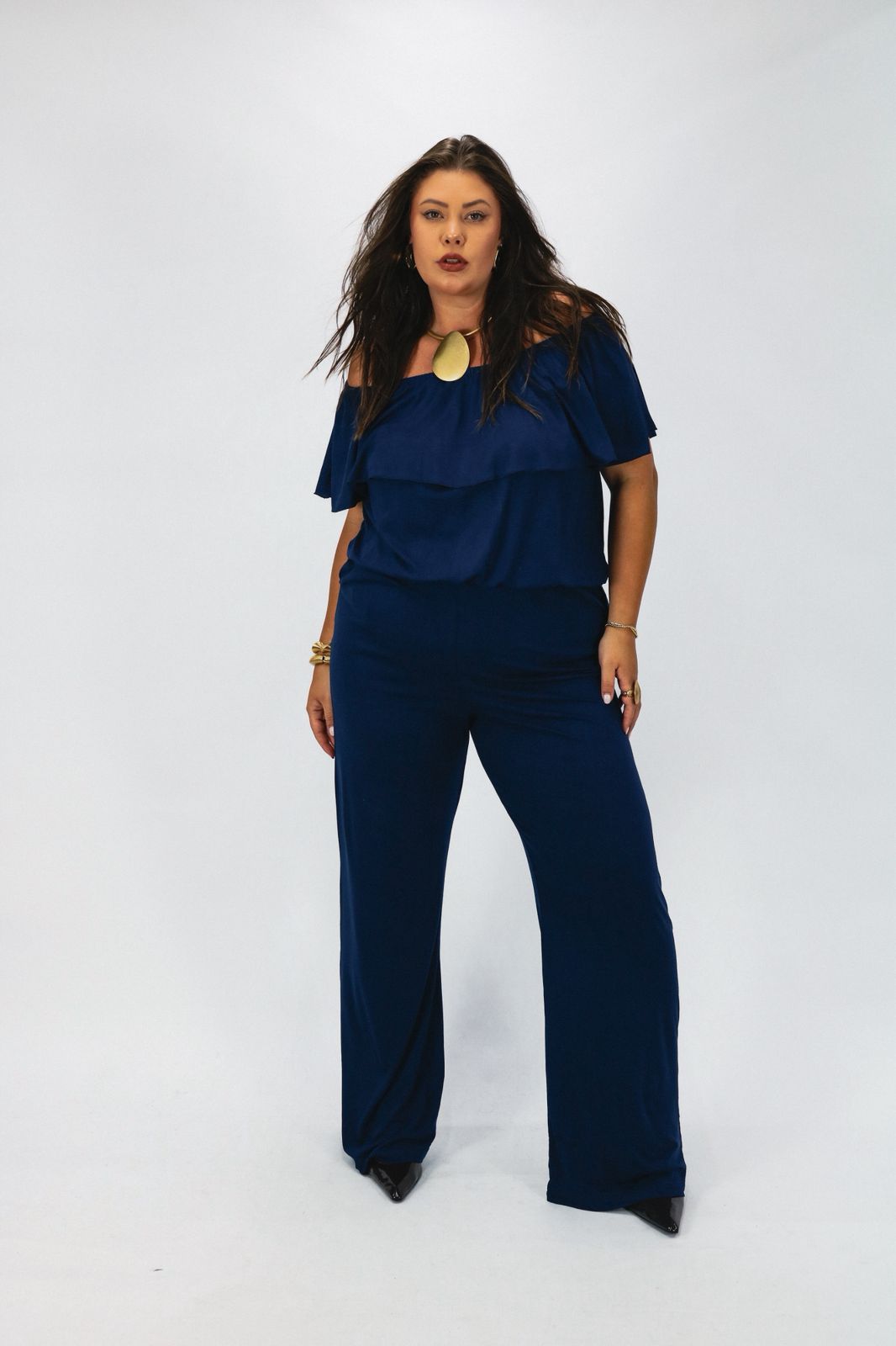 Um macacão que combina presença e delicadeza, com linhas que alongam a silhueta e detalhes que elevam o visual a outro nível. Uma peça que traduz elegância moderna sem perder o conforto.