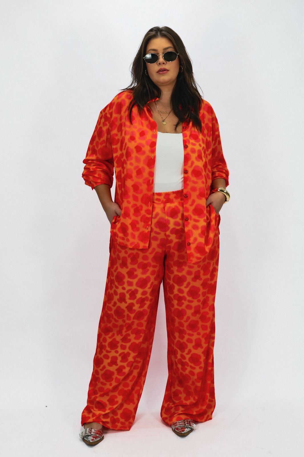 Modelagem: Pantalona com caimento leve e fluido, possui bolso faca funcional, cós com elástico que garante praticidade e ajuste perfeito, além da estampa exclusiva.