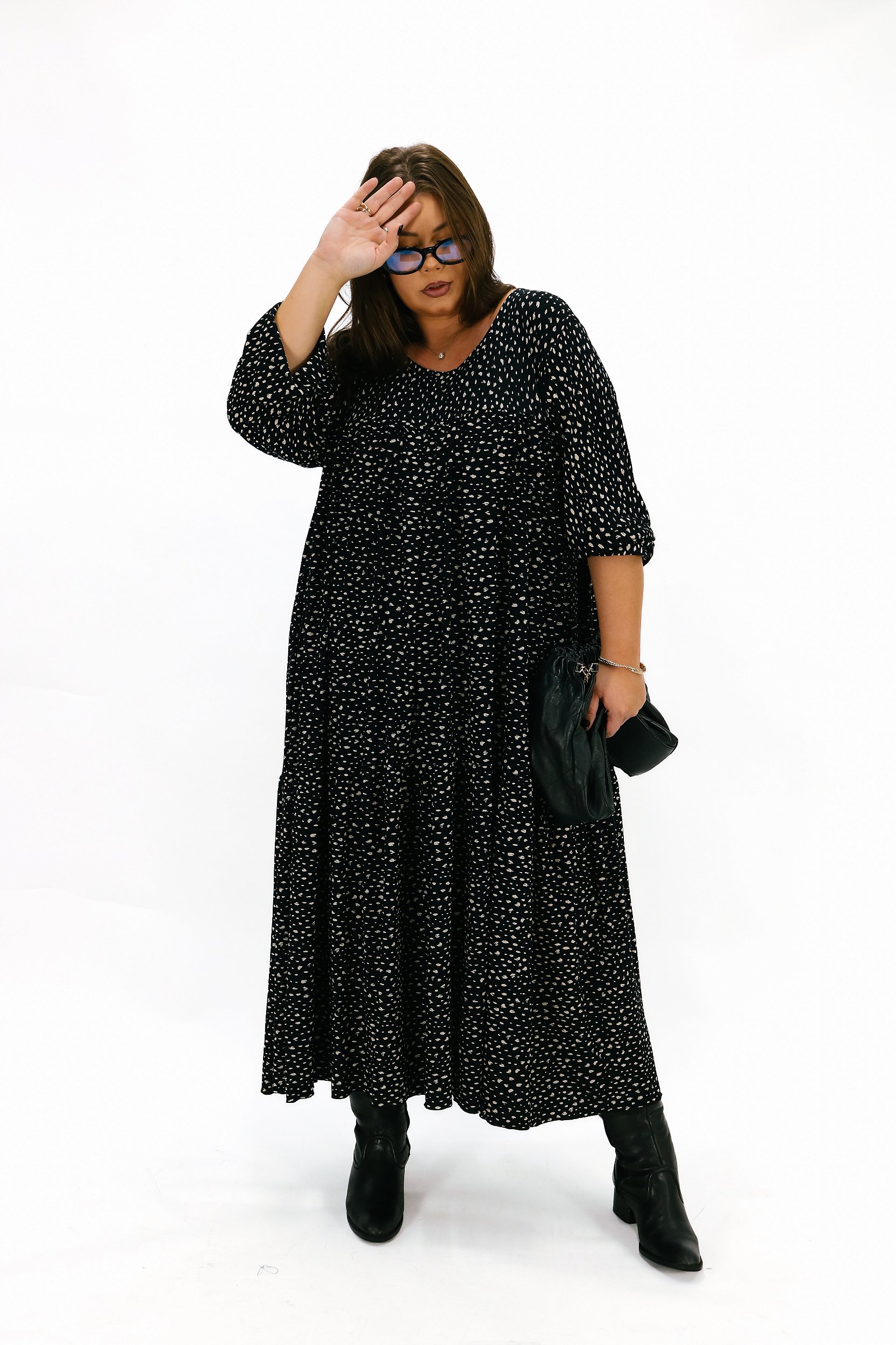 Vestido Laura é a escolha certa para quem quer se sentir bonita, confortável e livre em qualquer ocasião. Em viscolycra estampada com toque macio e caimento impecável, ele combina o charme atemporal do modelo três marias com uma silhueta ampla e fluida que valoriza todos os tipos de corpo.